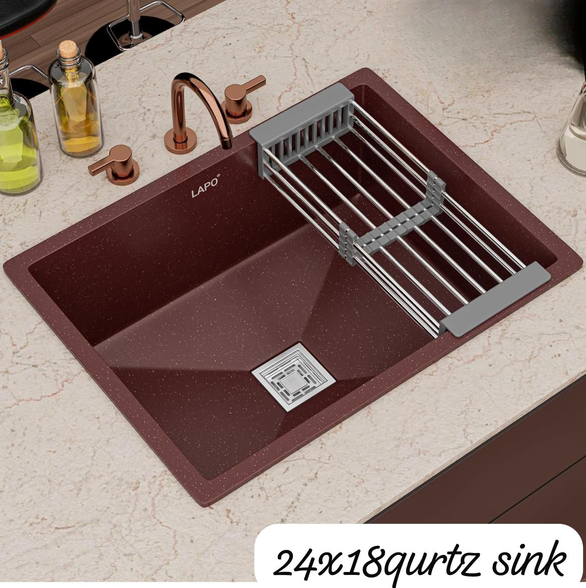 Upgrade your kitchen with this premium 24×18 quartz sink, designed for durability, style, and convenience. Made from high-quality quartz material, it offers excellent resistance against stains, scratches, and heat. The spacious single-bowl design provides ample room for washing utensils, fruits, and vegetables, while the included dish rack enhances functionality. Its elegant finish complements modern kitchen interiors, making it both a practical and stylish choice.